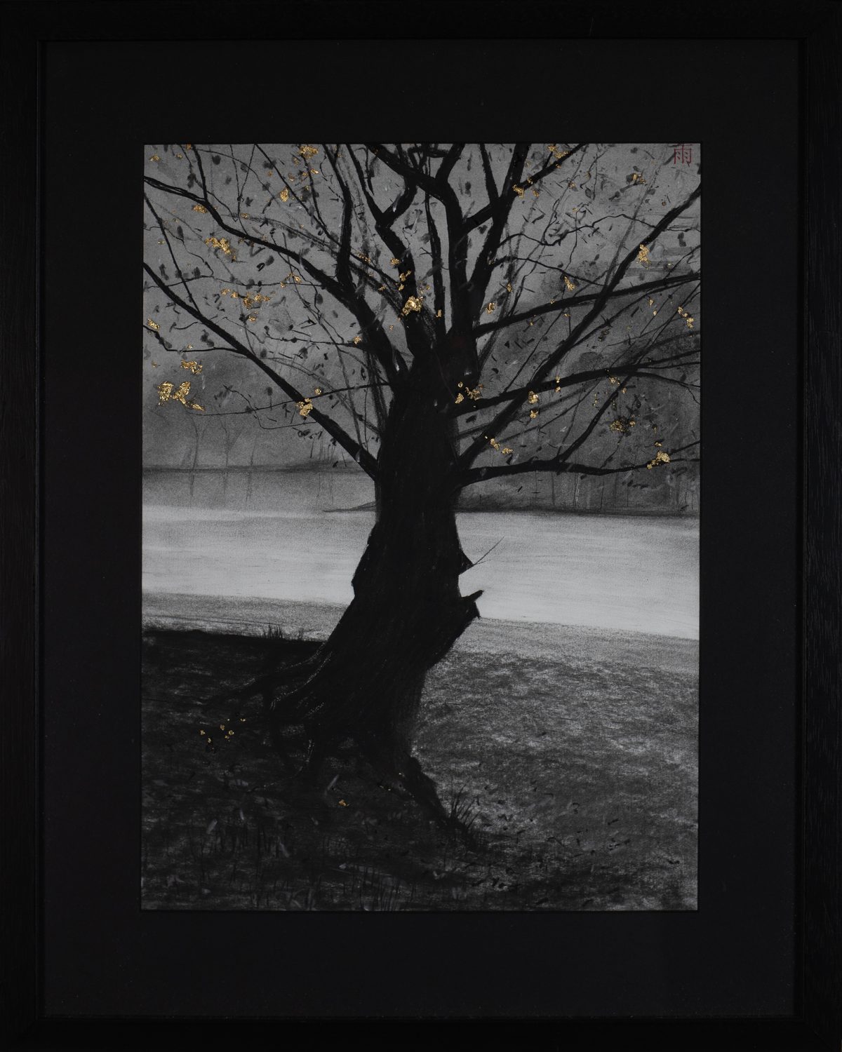 Charcoal, graphite and gold foil